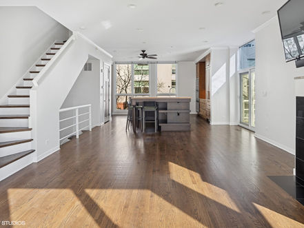 Welcome to this EXTRA WIDE CORNER spacious city townhome in Burley School District at 2946 North Wood Street, Unit A in Roscoe Village, Chicago. This modern, airy residence offers an expansive floor plan with high ceilings, 4 bedrooms, 2.5 bathrooms (1/2 bath can easily be re-converted to a full bath) plus a huge bonus top floor recreation room or home office complete with wet bar and refrigerator. The open-concept living area is bathed in natural light with floor-to-ceiling Pella windows, and features walnut stained oak hardwood floors, fresh paint throughout and a cozy gas fireplace with granite surround. The custom renovated chef's kitchen boasts a large island, double oven, pantry, custom paneled integrated Liebherr refrigerator, Bosch appliances and expansive granite countertops perfect for budding bakers and culinary enthusiasts to savor and entertain. Enjoy the luxury of three private outdoor spaces, including a wrap-around roof deck with stunning city views, balcony off the kitchen perfect for grilling and ground level patio to inspire your green thumb. The third level primary bedroom offers an ensuite renovated bath with glass enclosed shower plus 2 additional bedrooms and shared bath. The first level 4th bedroom with bath is perfect for guests including the unique 4-car parking: 2 car garage plus 2 car exterior parking pad. This home is a true urban oasis, meticulously renovated and maintained, living like a single family home and ready for you to enjoy in the heart of Chicago's vibrant Lakeview neighborhood with close proximity to Chi-Che Wang Park, Hamlin Park, Whole Foods, Jewel, Southport Corridor and the Brown Line CTA.